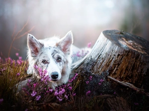 dog, trees, viewes, Flowers