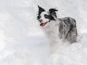 viewes, snow, Australian Shepherd, trees, dog